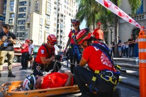 Cabe destacar que los equipos especializados de la Dirección Bomberos ya vienen realizando entrenamientos similares en los edificios del complejo Capitalinas, donde se pusieron en práctica distintas técnicas y protocolos profesionales de intervención ante escenarios de riesgo.
